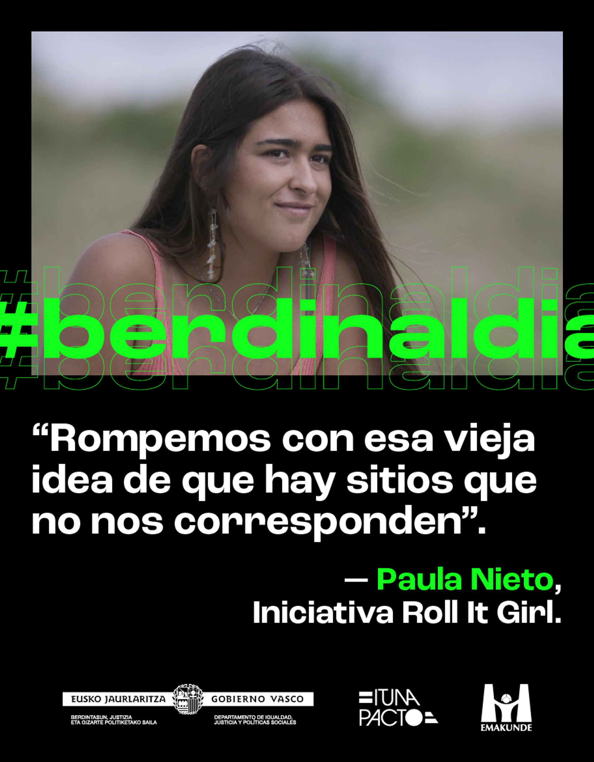#Berdinaldia nos ayudará a integrar las voces y la experiencia de la juventud en formatos estratégicos de Emakunde y del departamento como: Gizonduz, Begira, los cursos de verano de la EHU-UPV, Hezkidetza, Beldur Barik... además de convertirse en la bandera para crear nuevos entornos de sensibilización y diálogo en plataformas como Instagram (o TikTok).